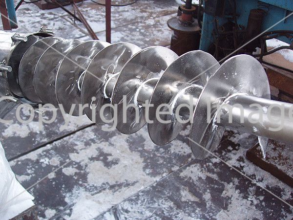 Наші неіржавкі транспортери являють собою шнек різного перерізу та кроку, що обертається в неіржавкої, металевої або полімерної трубі-корпусі з лючками або в відкритій напівтрубі. І корпус, і шнек можуть бути цілісними та складовими. Осьове зусилля шнека сприймається опорним вузлом із тілами кочення, невразними для абразиву.