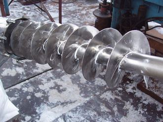 Наші неіржавкі транспортери являють собою шнек різного перерізу та кроку, що обертається в неіржавкої, металевої або полімерної трубі-корпусі з лючками або в відкритій напівтрубі. І корпус, і шнек можуть бути цілісними та складовими. Осьове зусилля шнека сприймається опорним вузлом із тілами кочення, невразними для абразиву.