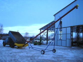 Транспортер перевантажувач зерна шнековий висотний призначений для переміщення зерна (колосових, круп'яних і зернобових культур, технічних і олійних культур) від місця зберігання (збору) до обладнання з оброблення або зберігання (а також у зворотній послідовності) на наступних технологічних операціях: